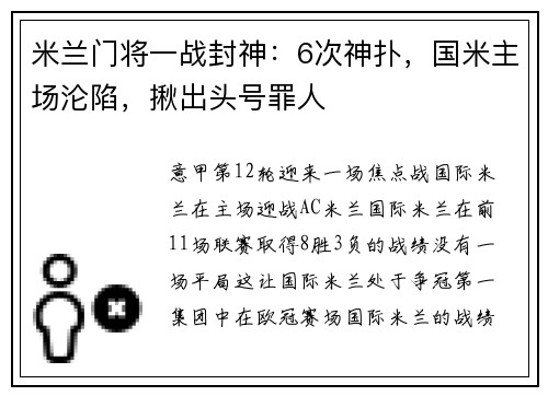 在一场备受瞩目的意甲焦点战中,弗拉霍维奇以一记冷静而果断的点球,帮助尤文图斯终结了长达四场的进球荒,并重新踏上胜利轨道。本篇文章将围绕这粒关键进球展开深入分析,从比赛背景、战术意义、球员心理变化以及球队未来影响四个方面全面解读其重要性。通过层层剖析,我们将看到这不仅是一粒进球,更是尤文图斯重新凝聚信...